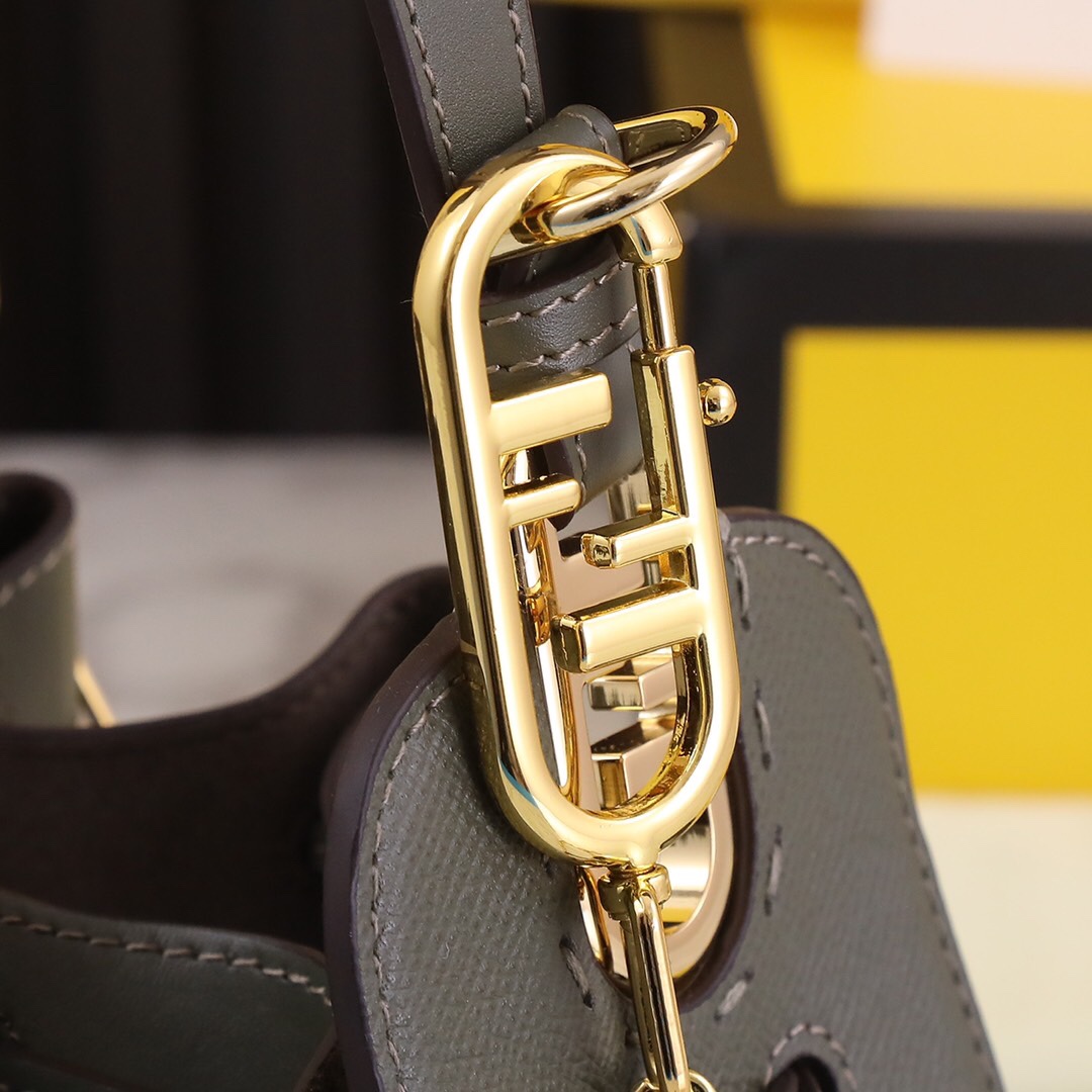 Fendi Leather Dumpling Bag, Calfskin with Drawstring, Dark Green