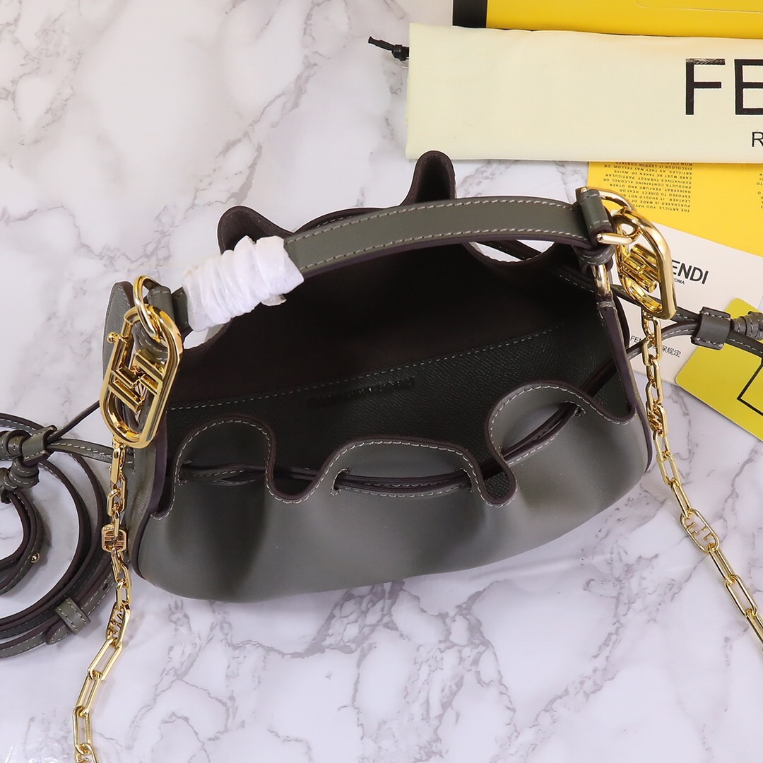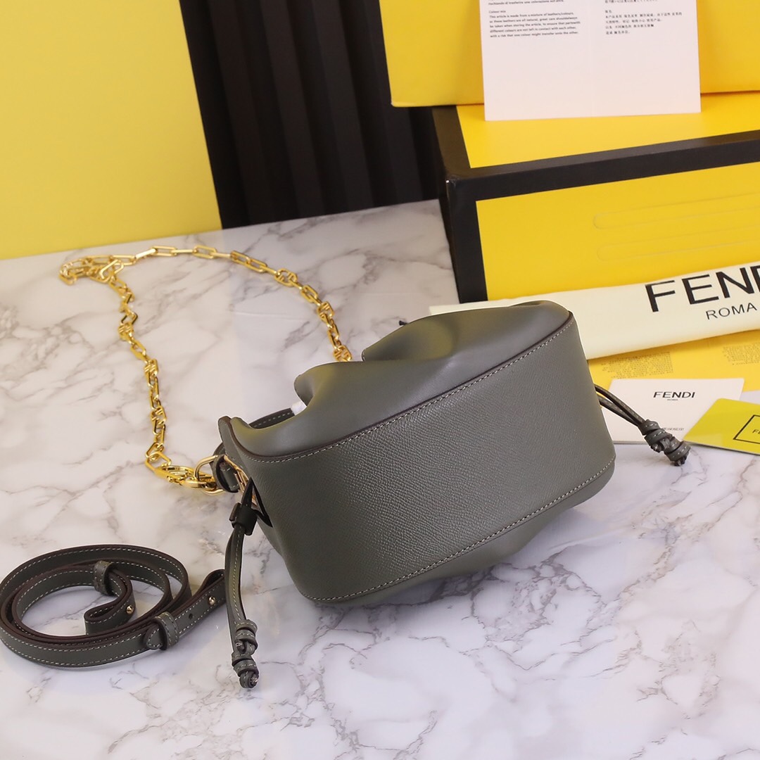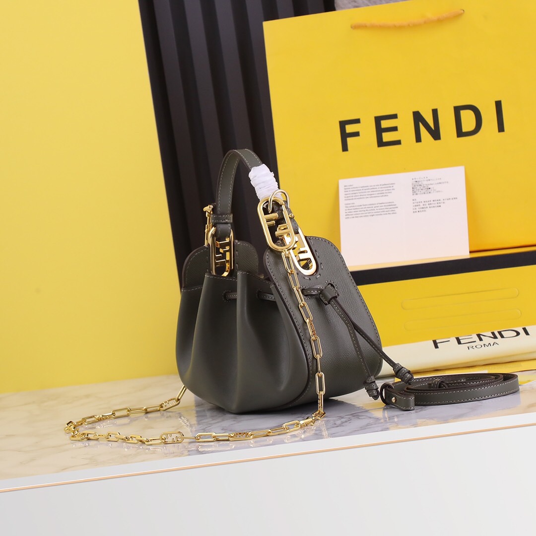 • Fendi Leather Dumpling Bag, Calfskin with Drawstring, Dark Green