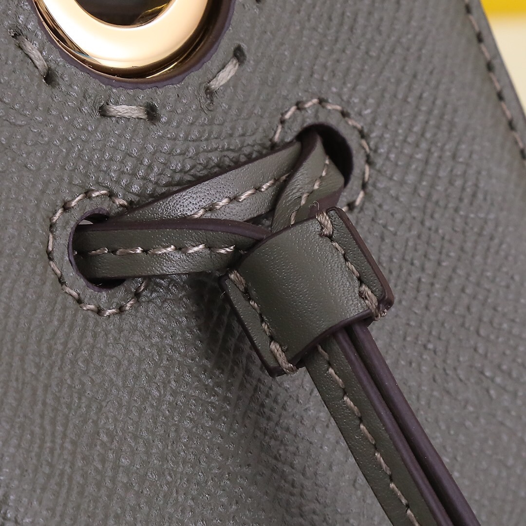 Made of calfskin with a drawstring design, versatile for multiple carrying styles, elegant and sophisticated.