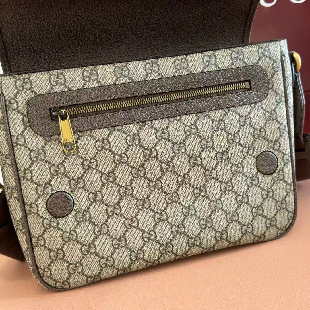 Color: Brown/PVC. Made of GG Supreme Tender canvas and embellished with Double G hardware. Blue and black GG Supreme Tender canvas with blue leather trim and a cotton and linen blend lining with Double G detailing. Interior: one zippered pocket; exterior: one zippered pocket, two magnetic pockets; adjustable shoulder strap (47 cm drop) with magnetic flap closure. Weight: approximately 1.1 kg.