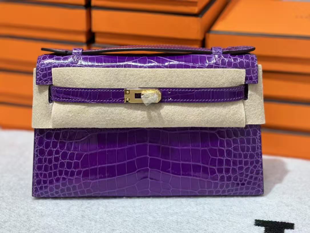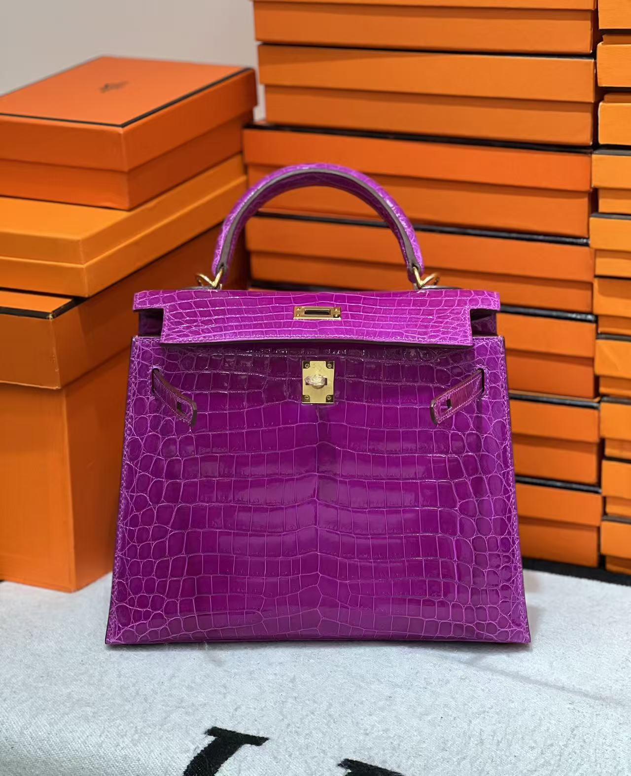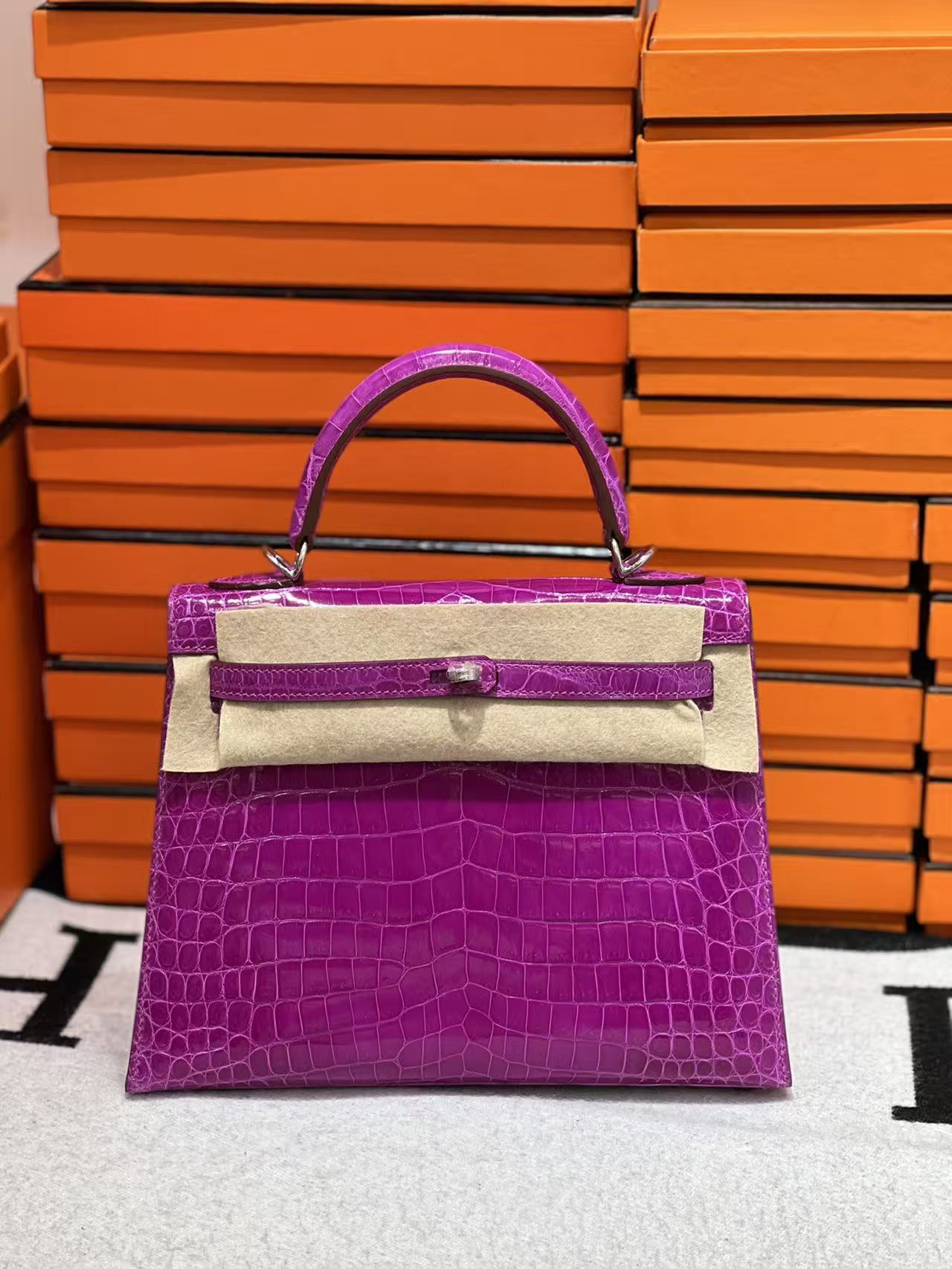 Hermes Kelly bag crocodile pattern shiny first and second generation full size mini 19cm 22cm 25cm 28cm 30cm 35cm 40cm Arabian Nights purple purple orange royal blue blue green emerald gray light green brown