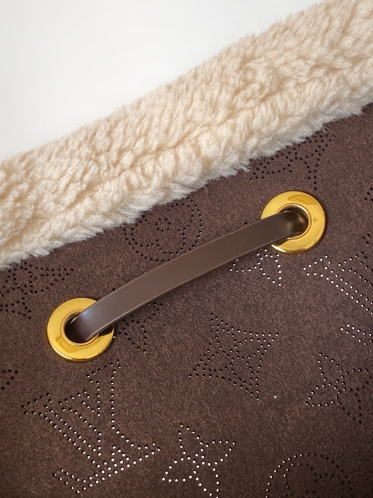 This Bella handbag, from the LV Ski collection, features luxurious perforated suede leather with sheepskin trim, showcasing the season's style with a warm and inviting feel. The Monogram perforated pattern continues the iconic element, while chain details add a finishing touch. A round coin purse provides secure storage. 19.0 x 22.0 x 14.0 cm (Length x Height x Width)