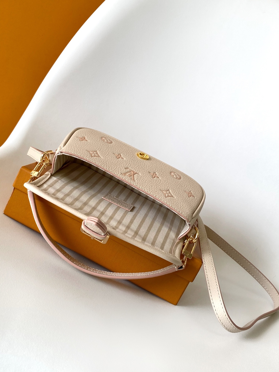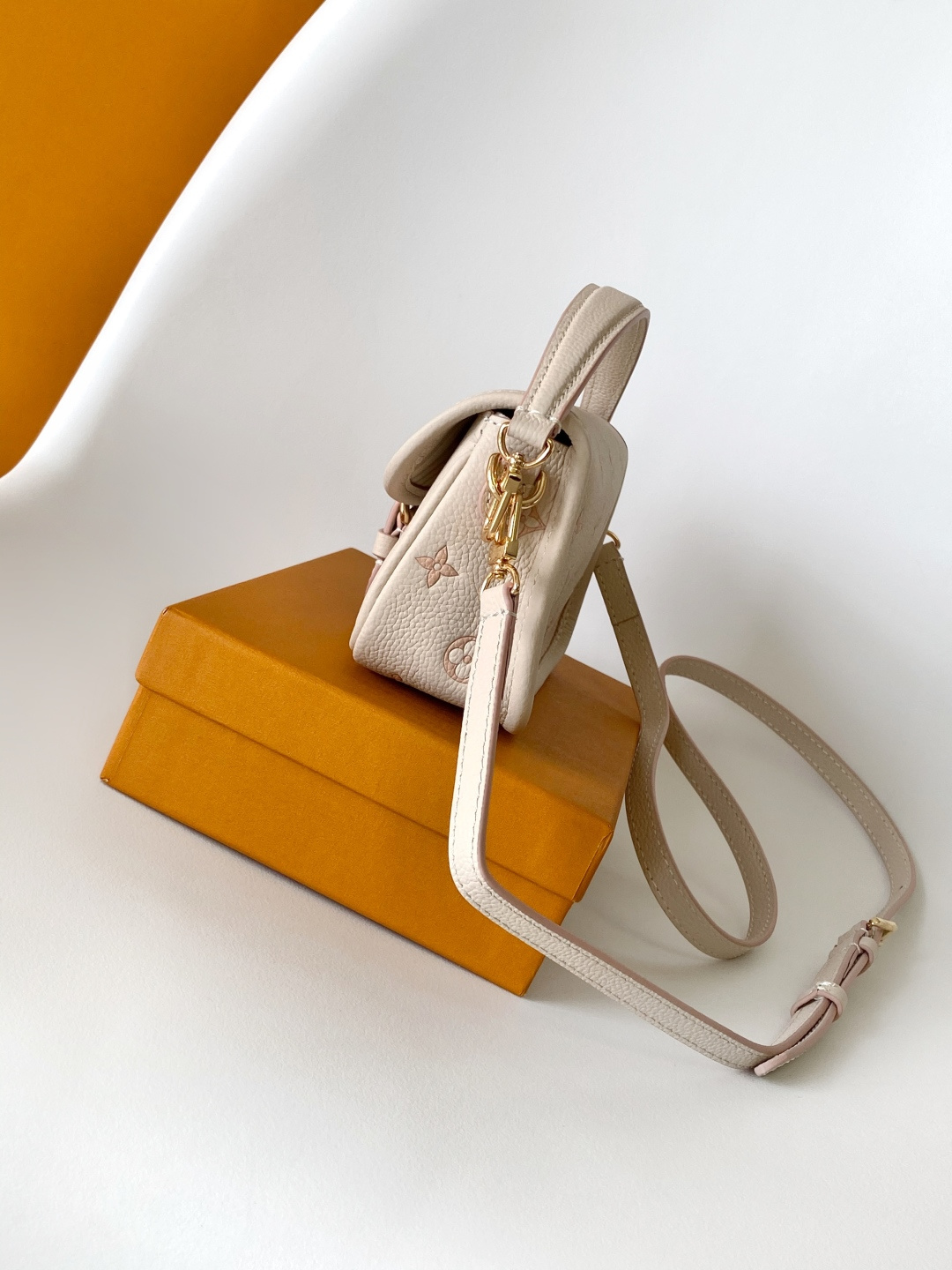 Reinterpreting the classic Monogram pattern with a tonal aesthetic, this leather bag features striking metal hardware, a detachable shoulder strap, and a handle. Its compact design easily accommodates everyday essentials such as cardholders and cosmetics. 19.0 x 10.5 x 6.0 cm (Length x Height x Width)