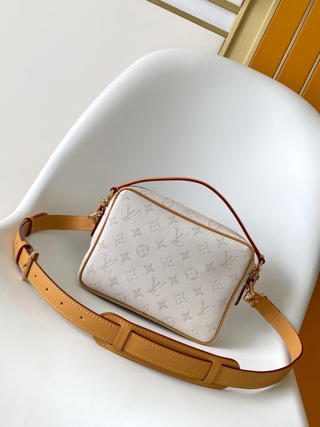 Reinterpreting the Nil handbag in Monogram Heritage coated canvas, this bag embodies a vintage style with ocean hues. Its compact design includes a zippered main compartment and a zippered front pocket, while its sharp corners echo trunk-making heritage. Both the top handle and leather shoulder strap are detachable, allowing for multiple carrying options. 25.0 x 17.5 x 11.0 cm (Length x Height x Width)