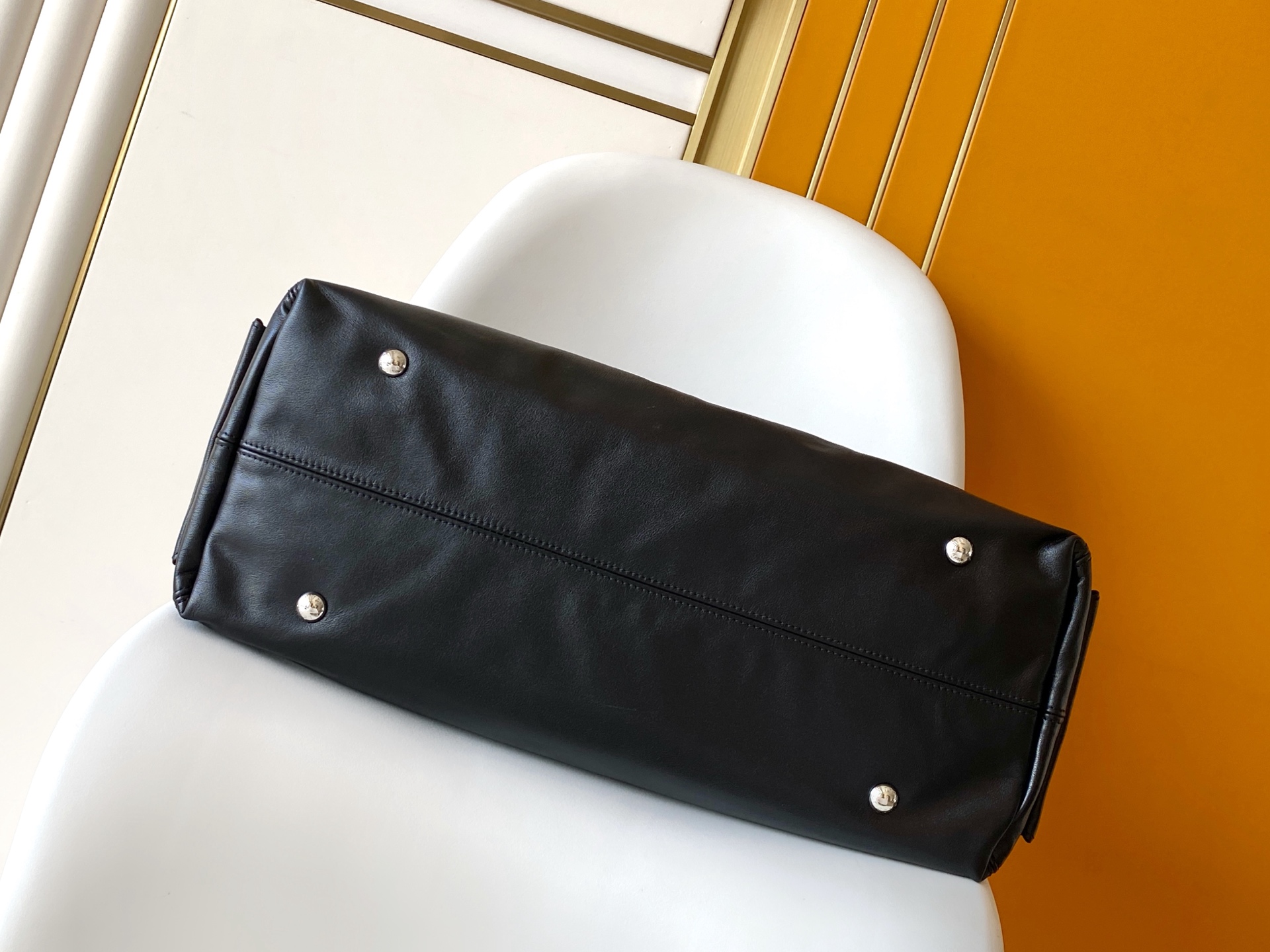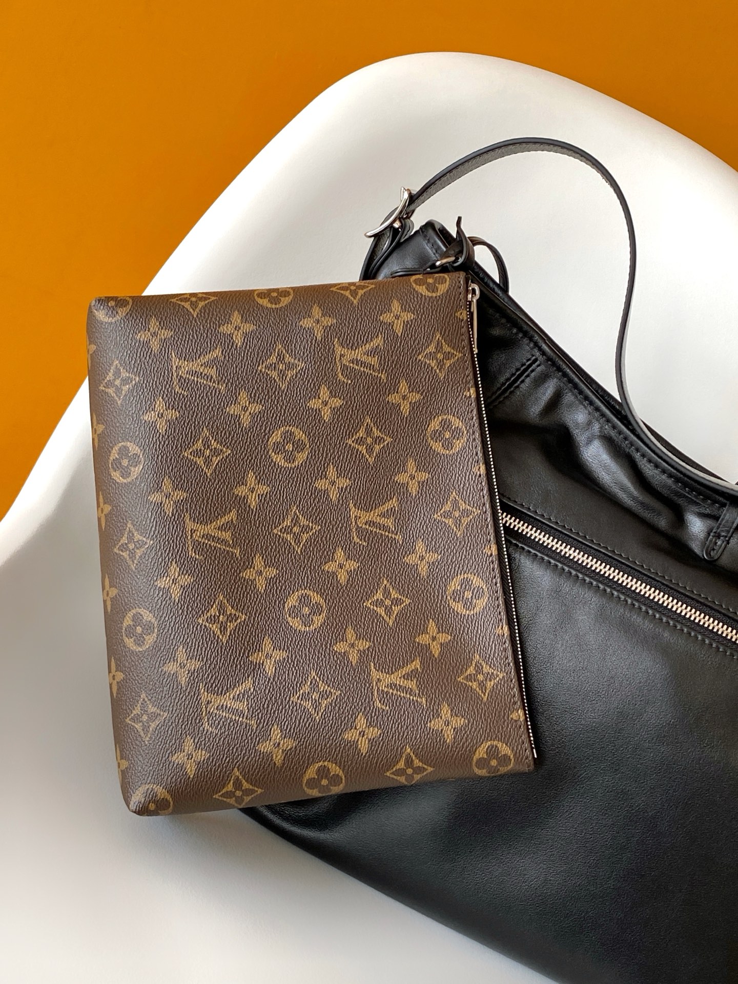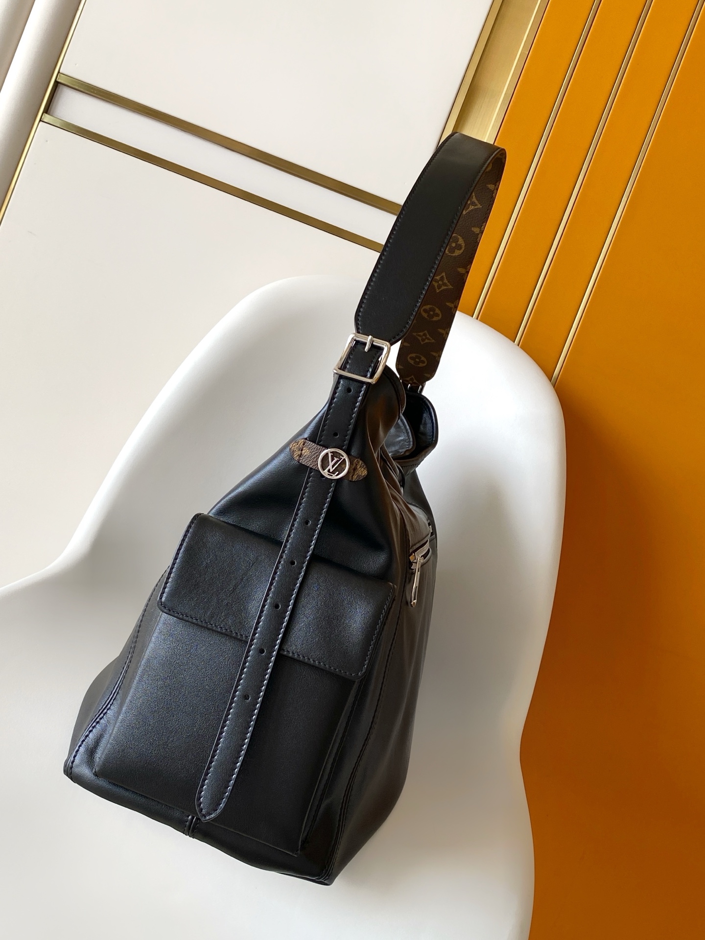 Crafted from supple calfskin leather, this bag incorporates Monogram canvas elements into its branding and lining, making it an elegant travel choice. Multiple pockets, including side compartments, highlight its functionality, while the detachable and adjustable shoulder strap ensures comfortable carrying.
