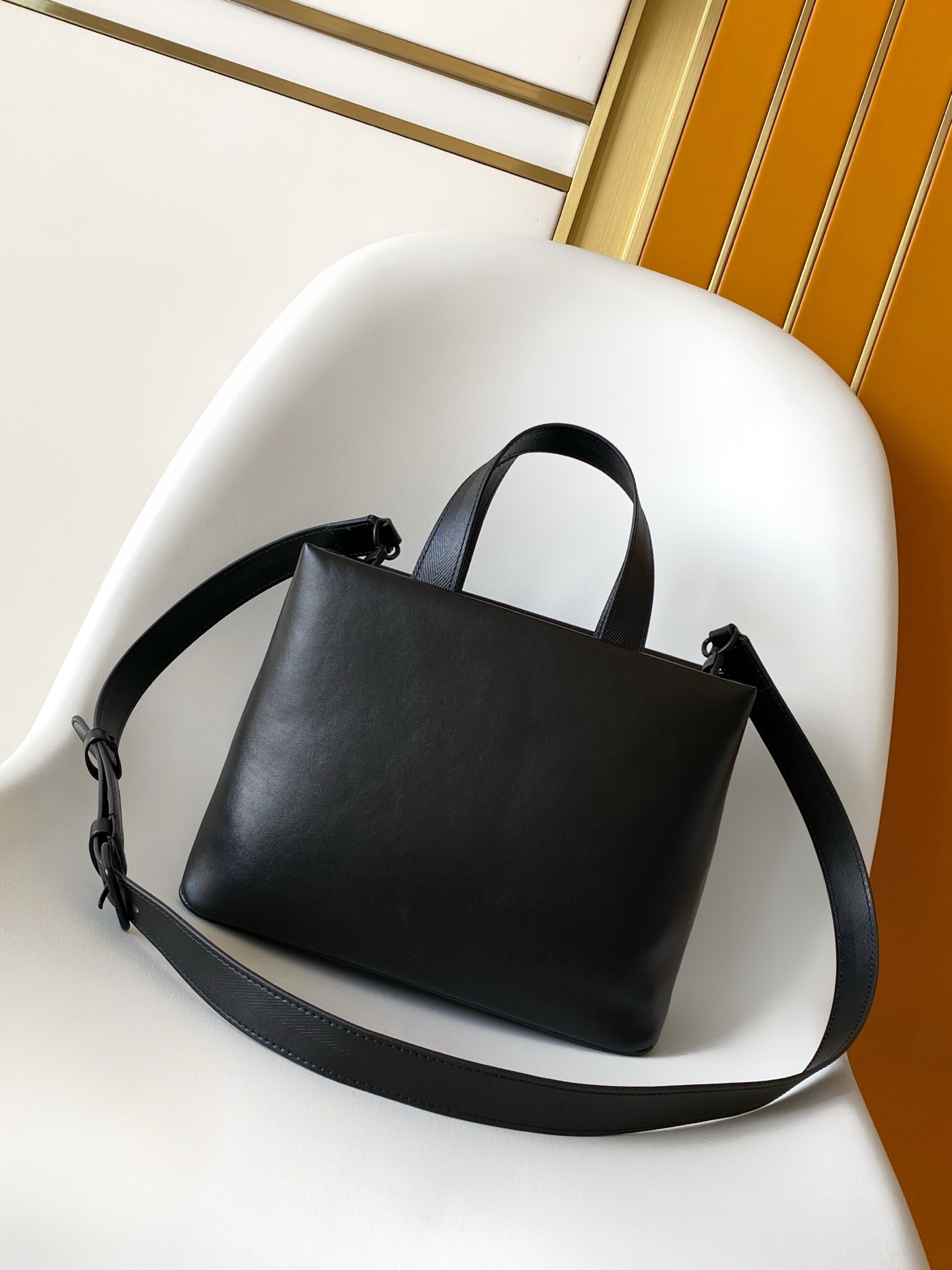 This Shopper medium handbag draws inspiration from Louis Vuitton tote bags, featuring the Louis Vuitton and Maison Fondée En 1854 logos on supple calfskin leather, top handle, and detachable shoulder strap.