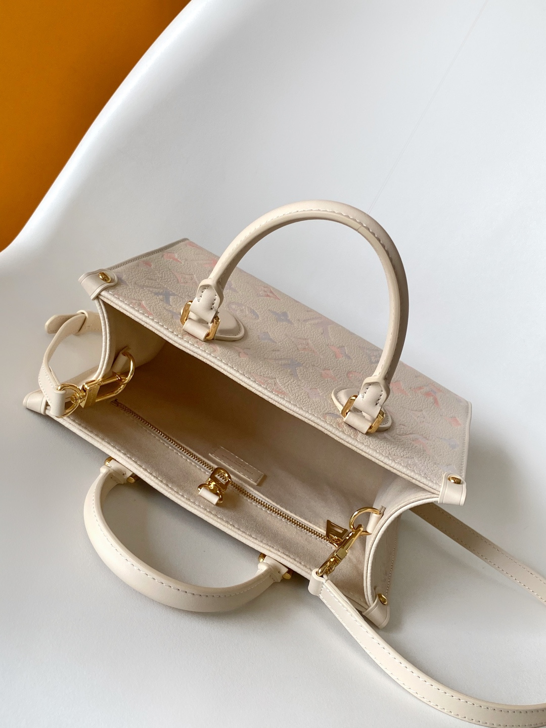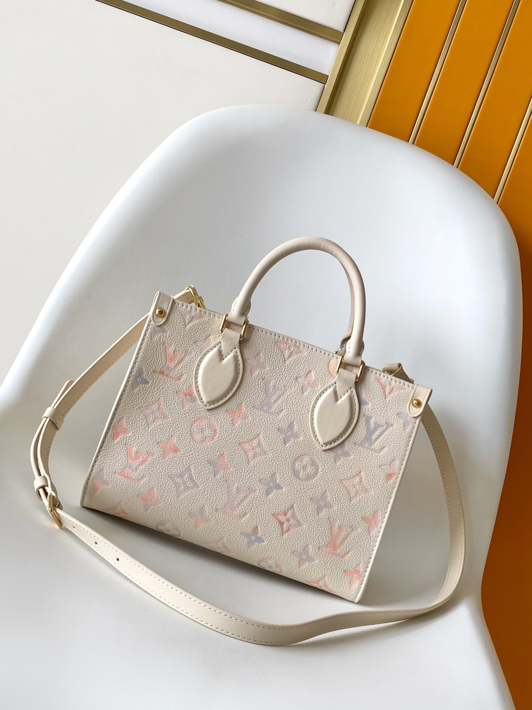 Louis Vuitton M25770 Off-White Gradient Leather Square Bag, ONTHEGO Small Handbag