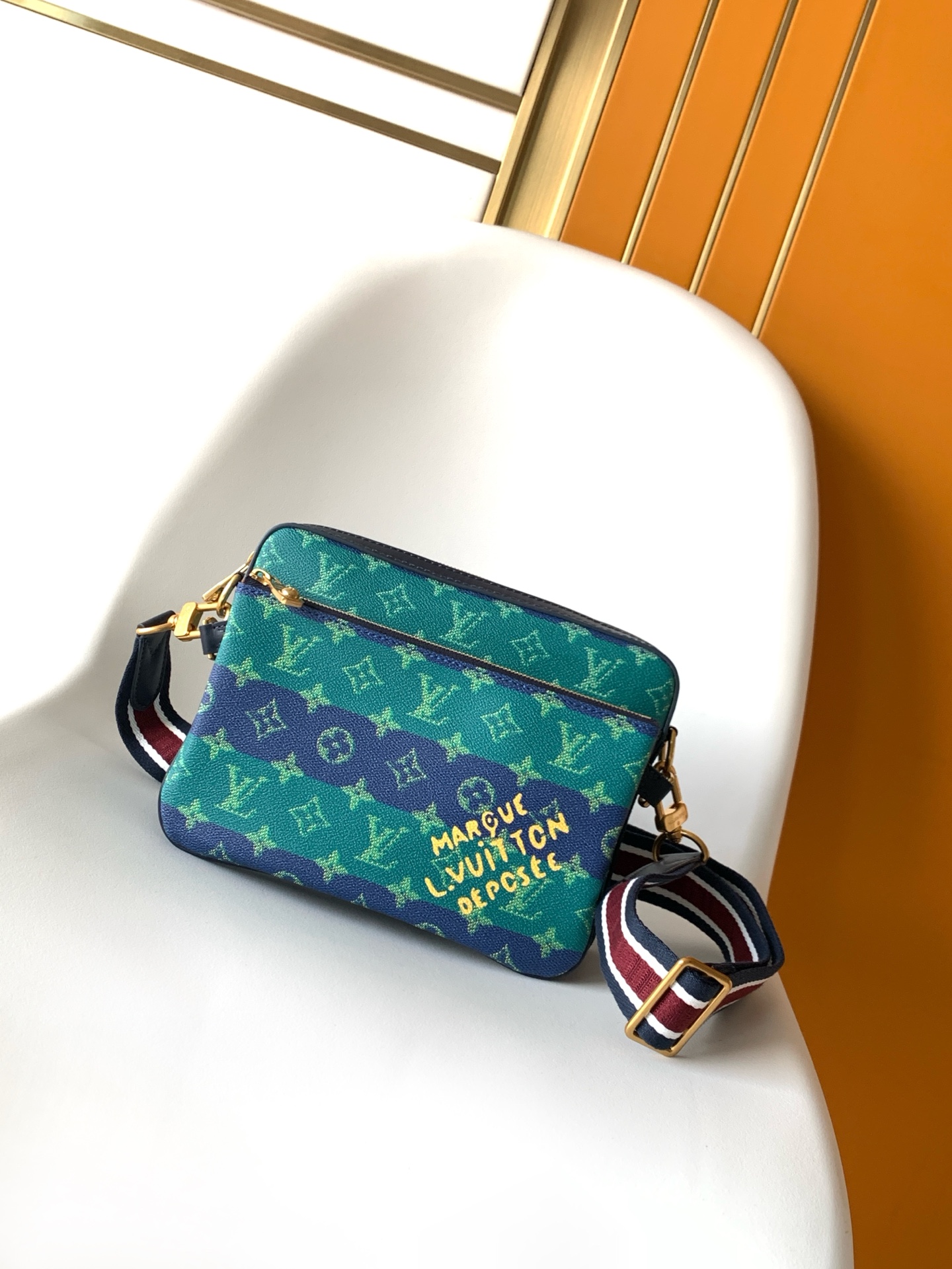 Louis Vuitton M26026 Blue Floral Trio Messenger Bag