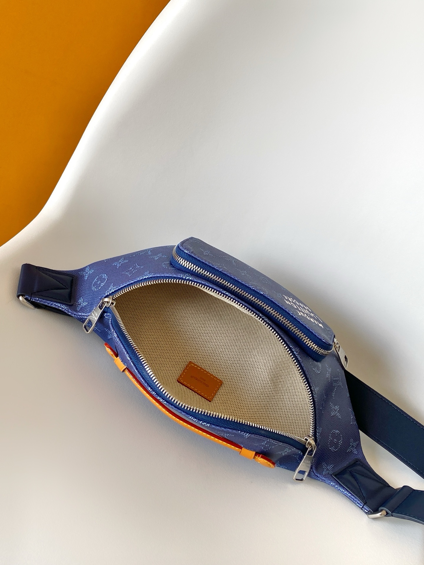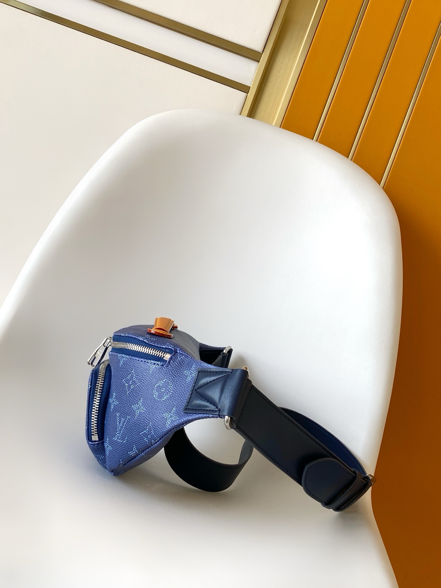 Louis Vuitton M26821 Dark Blue Rush Chest Bag/Waist Bag Made from Exquisite Monogram Shadow Leather