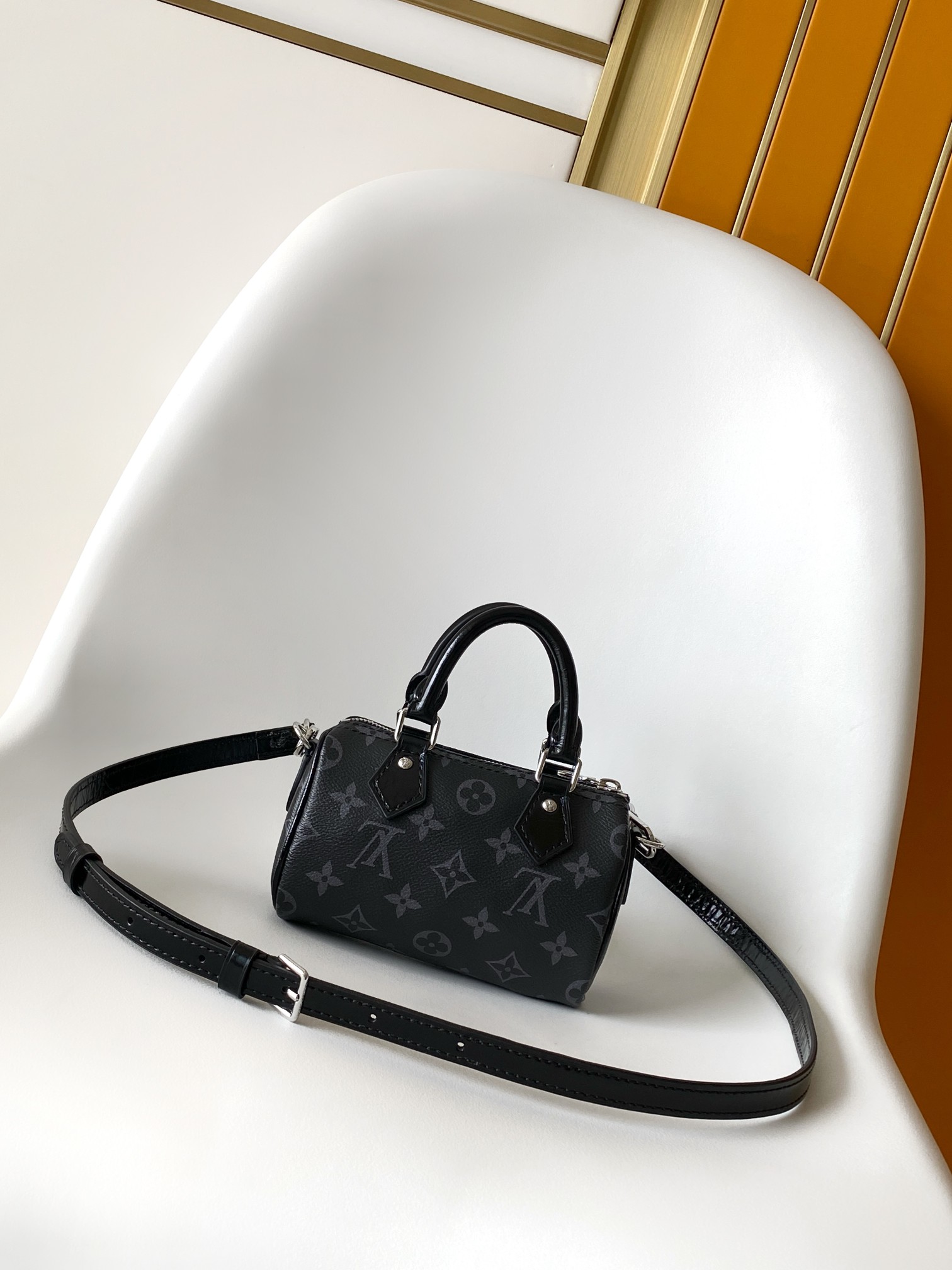 Louis Vuitton Nano Speedy MINI Handbag M26573 (Black Floral Pattern)